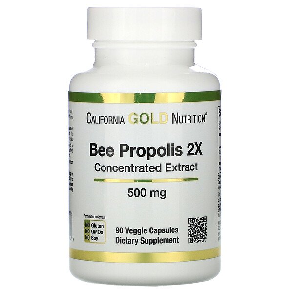 California Gold Nutrition, 꿀벌 프로폴리스 2X, 농축 추출물, 500mg, 베지 캡슐 90정