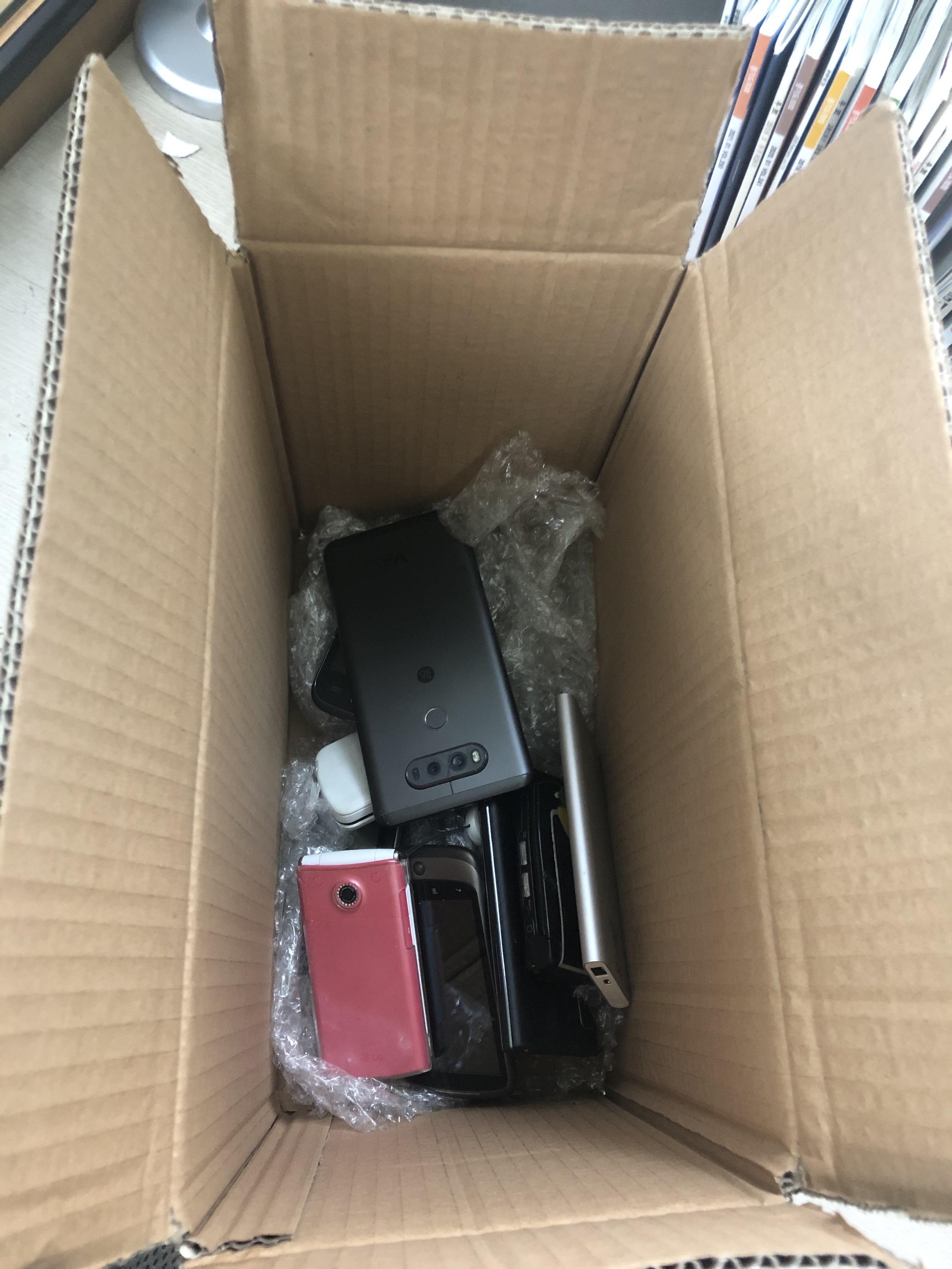 쓰지 않는 휴대폰(스마트폰) 본체, 충전기, 배터리 등을 담아서 수도권 자원순환센터에 보내면 됩니다.