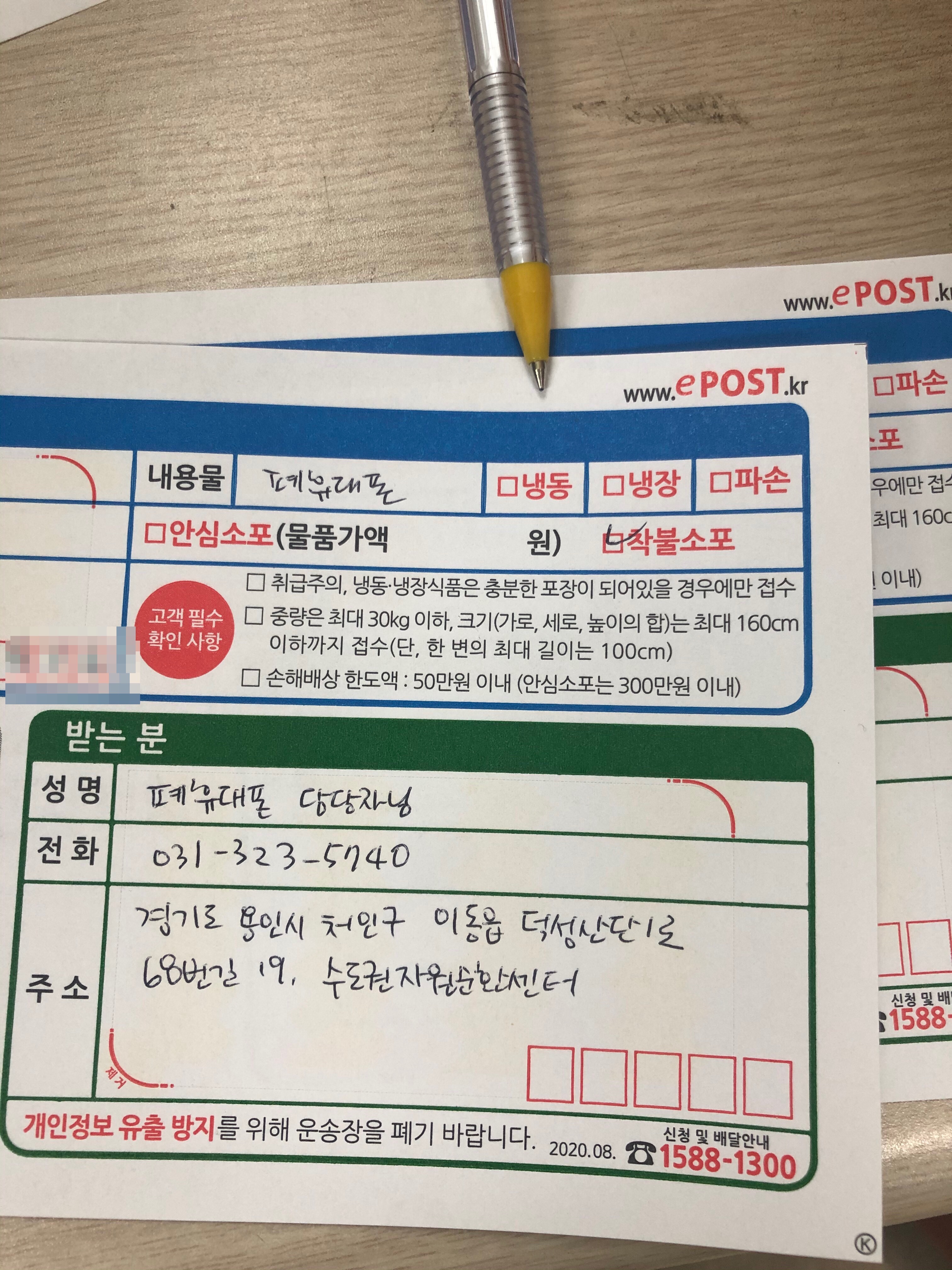 아래 사진처럼요. 물론 착불로 보내면 되니 비용이 들지 않습니다.