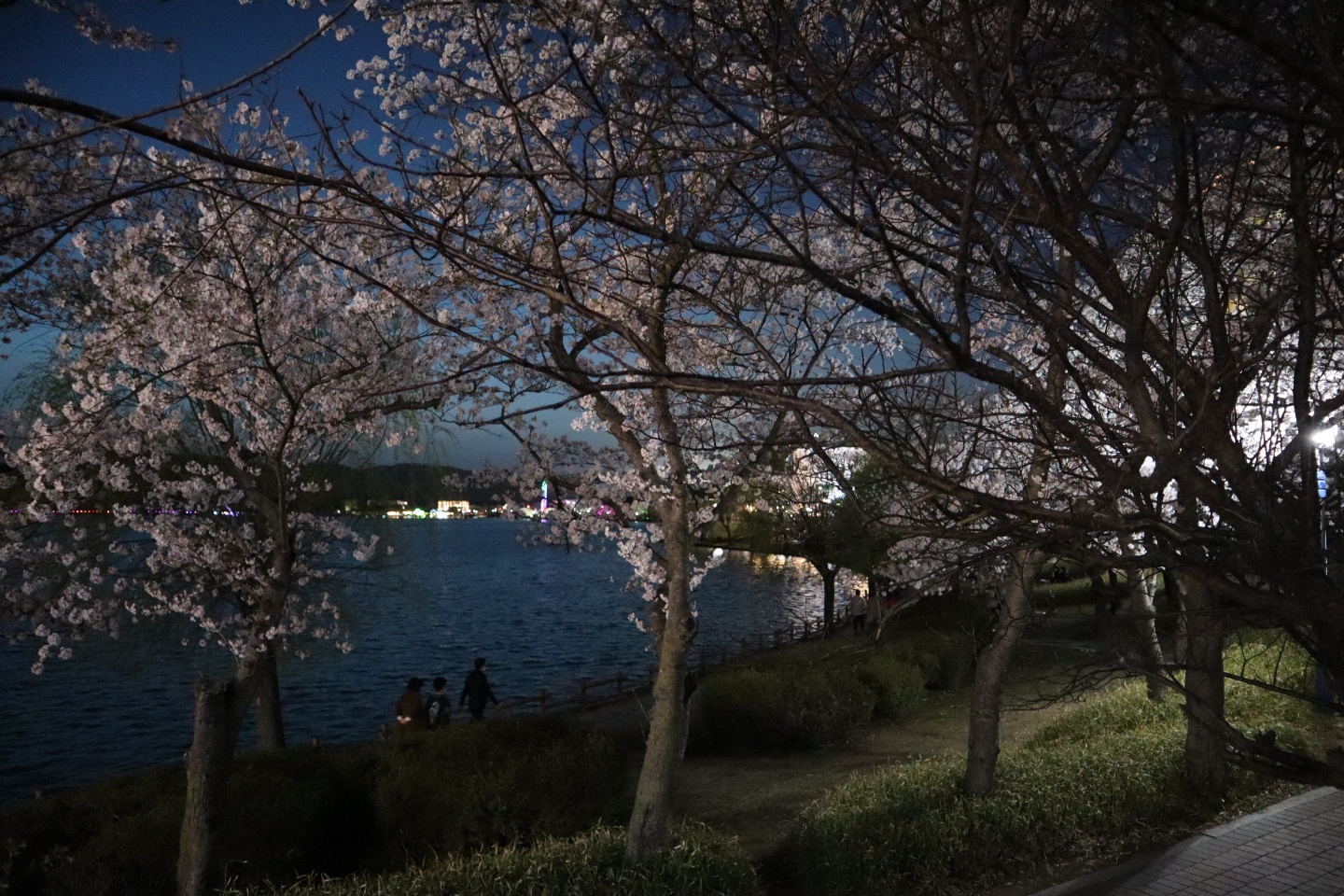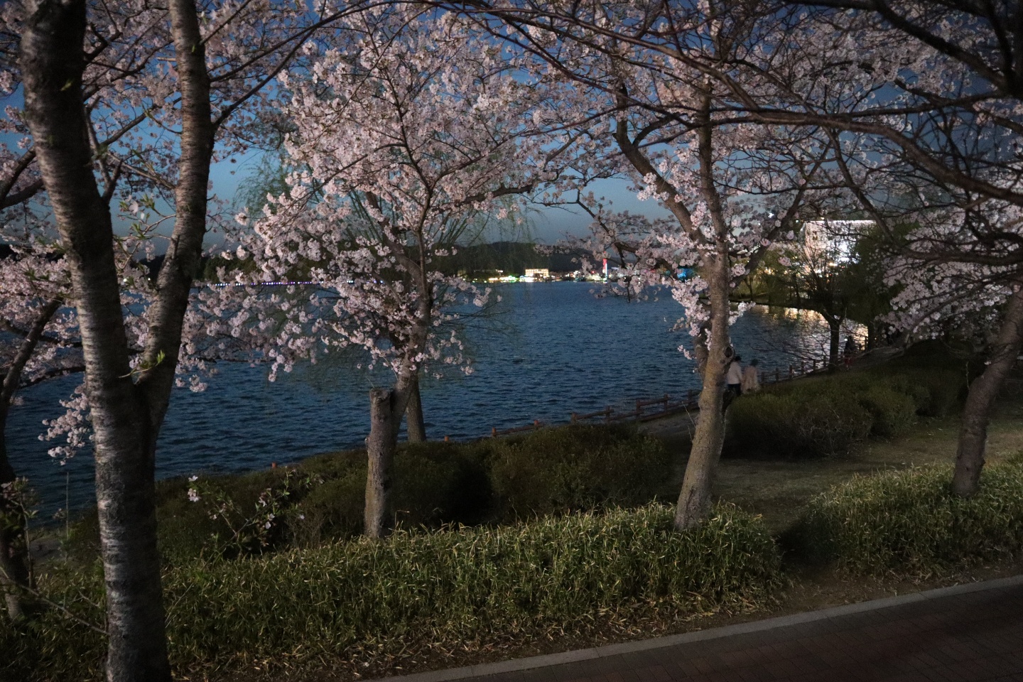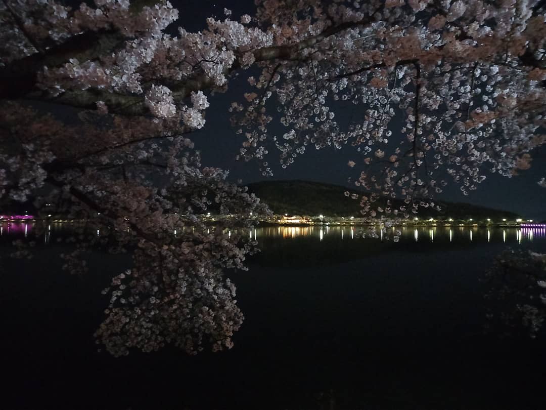 밤에 가니 나무 주변의 조명들이 벚꽃과 어우러져서 정말 예뻤네요.