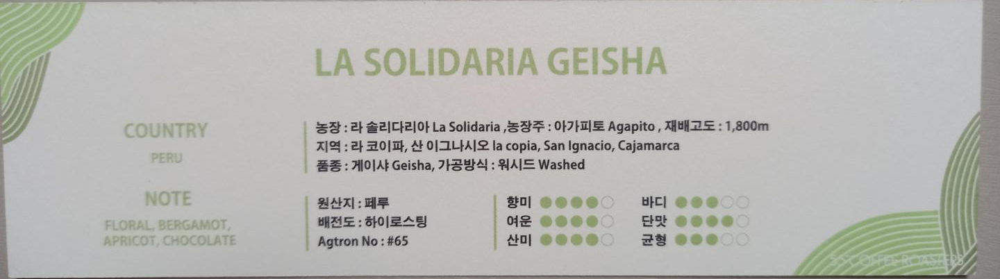 LA SOLIDARIA GEISHA가 맛이 좋았습니다.