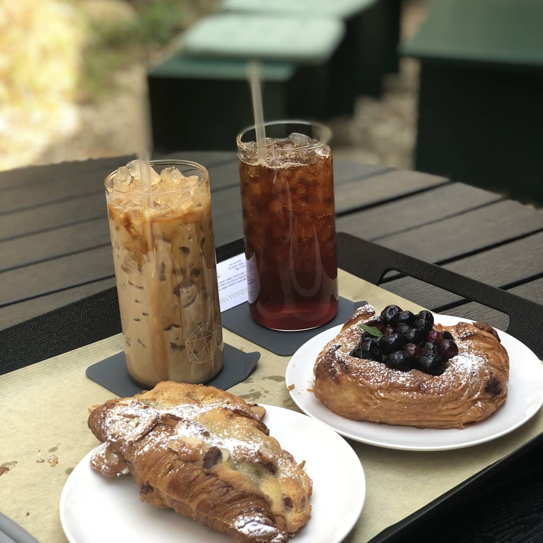 날씨 좋은 날에 야외 테이블에서 커피와 빵을 즐기니 참 좋았네요.