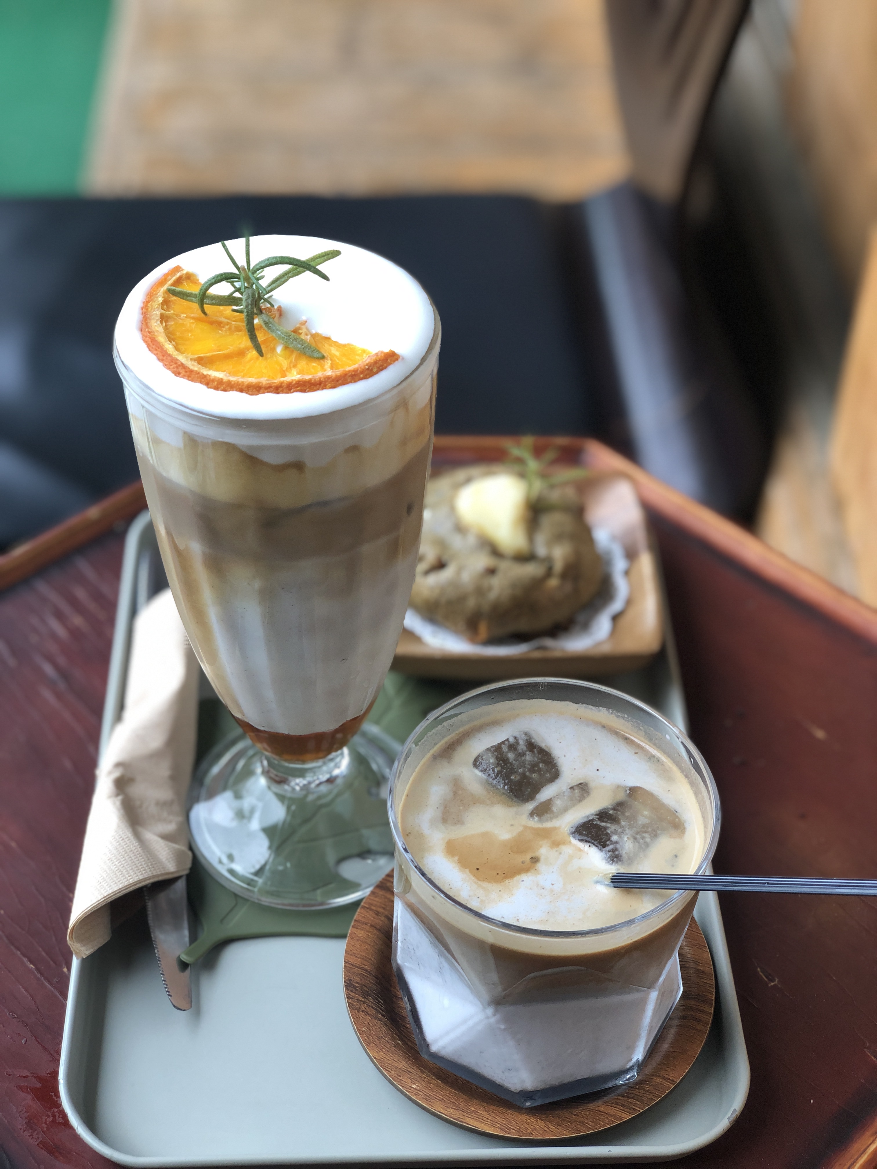 오렌지비앙코와 흑임자라떼, 그리고 수제쿠키를 시켰는데