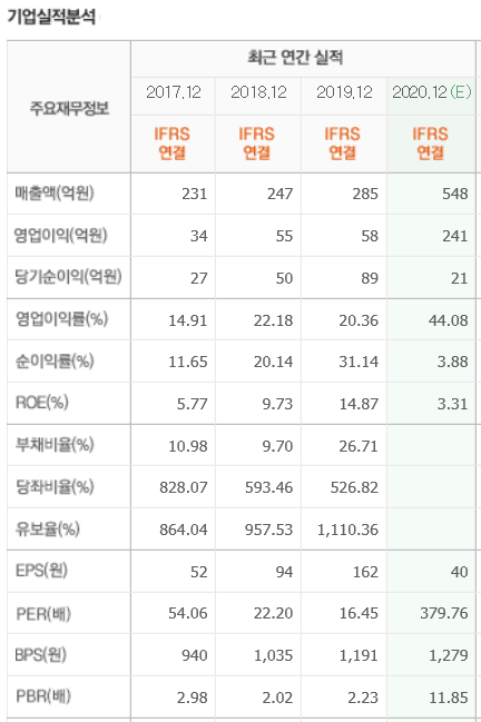 재무를 보면 매출액이 꾸준히 증가하고 있고 올해엔 많은 영업이익 상승이 예상된다. 다만 ROE가 많이 떨어지고 PBR이 급격히 높아진 것은 리스크로 작용할 가능성이 있어서 당분간은 매수를 안하고 지켜보려고 한다.